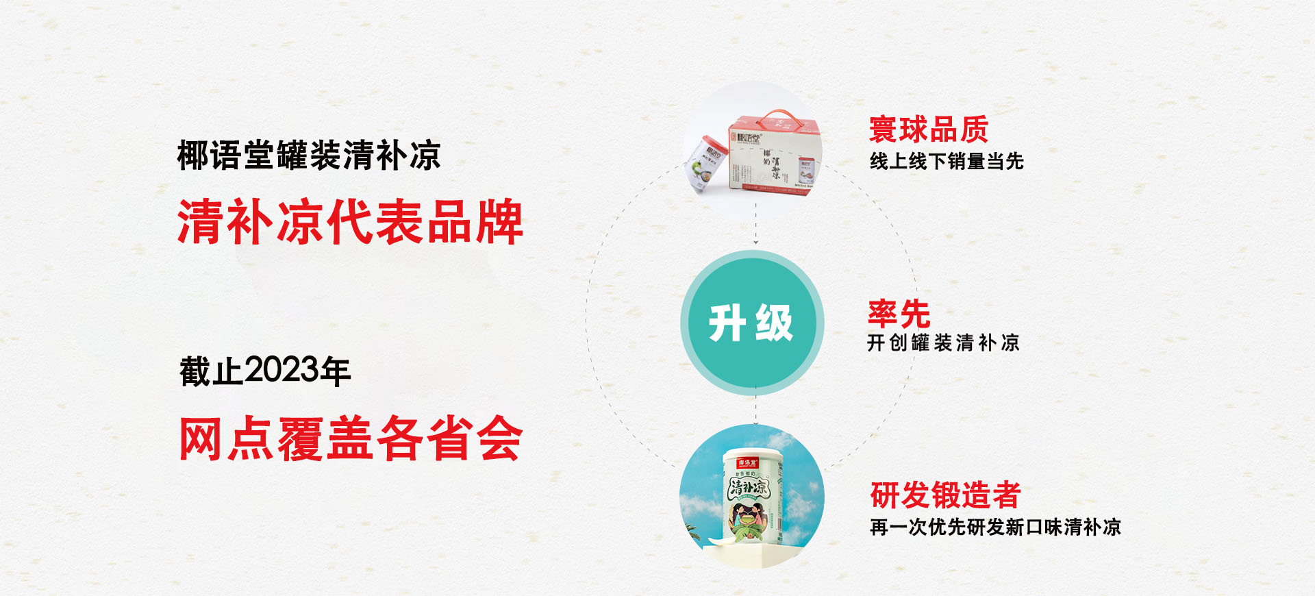 椰語堂公司介紹 椰語堂始創(chuàng)于2012年,是海南一家把海南清補(bǔ)涼為代表的特色小吃精致化、標(biāo)準(zhǔn)化并進(jìn)行連鎖發(fā)展的企業(yè),椰語堂專注于海南本土地域特色元素特別是椰子系列產(chǎn)品的深度研發(fā)。椰語堂被評(píng)為海南風(fēng)味小吃一級(jí)品牌名店,椰語堂多款小吃被評(píng)為海南名小吃、中國(guó)名小吃,并被選為中國(guó)地域十大名小吃代表品牌。椰語堂的全國(guó)門店分布在各高端商場(chǎng)、機(jī)場(chǎng)、郵輪、五星級(jí)酒店、動(dòng)車站、景區(qū)等。椰語堂清補(bǔ)涼被選為博鰲亞洲論壇專供產(chǎn)品、中國(guó)國(guó)際養(yǎng)生食品博覽會(huì)金獎(jiǎng)等殊榮,椰語堂清補(bǔ)涼在線下各連鎖賣場(chǎng)、盒馬鮮生、中石化易捷、中石油昆侖、全國(guó)30多家機(jī)場(chǎng)、五星、七星酒店等渠道銷售并成為政府及集團(tuán)采購產(chǎn)品。在電商線上渠道,椰語堂椰奶清補(bǔ)涼無論在銷量和好評(píng)方面是品類第一,是深受消費(fèi)者喜愛的高品質(zhì)產(chǎn)品。椰語堂是海南大學(xué)食品學(xué)院研究生實(shí)習(xí)基地,公司發(fā)揮椰語堂研究院優(yōu)勢(shì),擁有產(chǎn)品研發(fā)方面的多項(xiàng)專利。椰語堂因?yàn)槠鋬?yōu)秀品質(zhì)及良好顧客體驗(yàn),被中央電視臺(tái)、湖南衛(wèi)視、旅游衛(wèi)視等多家衛(wèi)視、人民日?qǐng)?bào)、中國(guó)縣域經(jīng)濟(jì)報(bào)、新浪、騰訊、SSBD等國(guó)內(nèi)外媒體報(bào)道宣揚(yáng)。椰語堂是海南文化的傳播和弘揚(yáng)者,是海南地標(biāo)美食品牌的優(yōu)秀代表和海南地域文化的一張亮麗名片,同時(shí),椰語堂也是中國(guó)連鎖經(jīng)營(yíng)協(xié)會(huì)會(huì)員單位。 more |